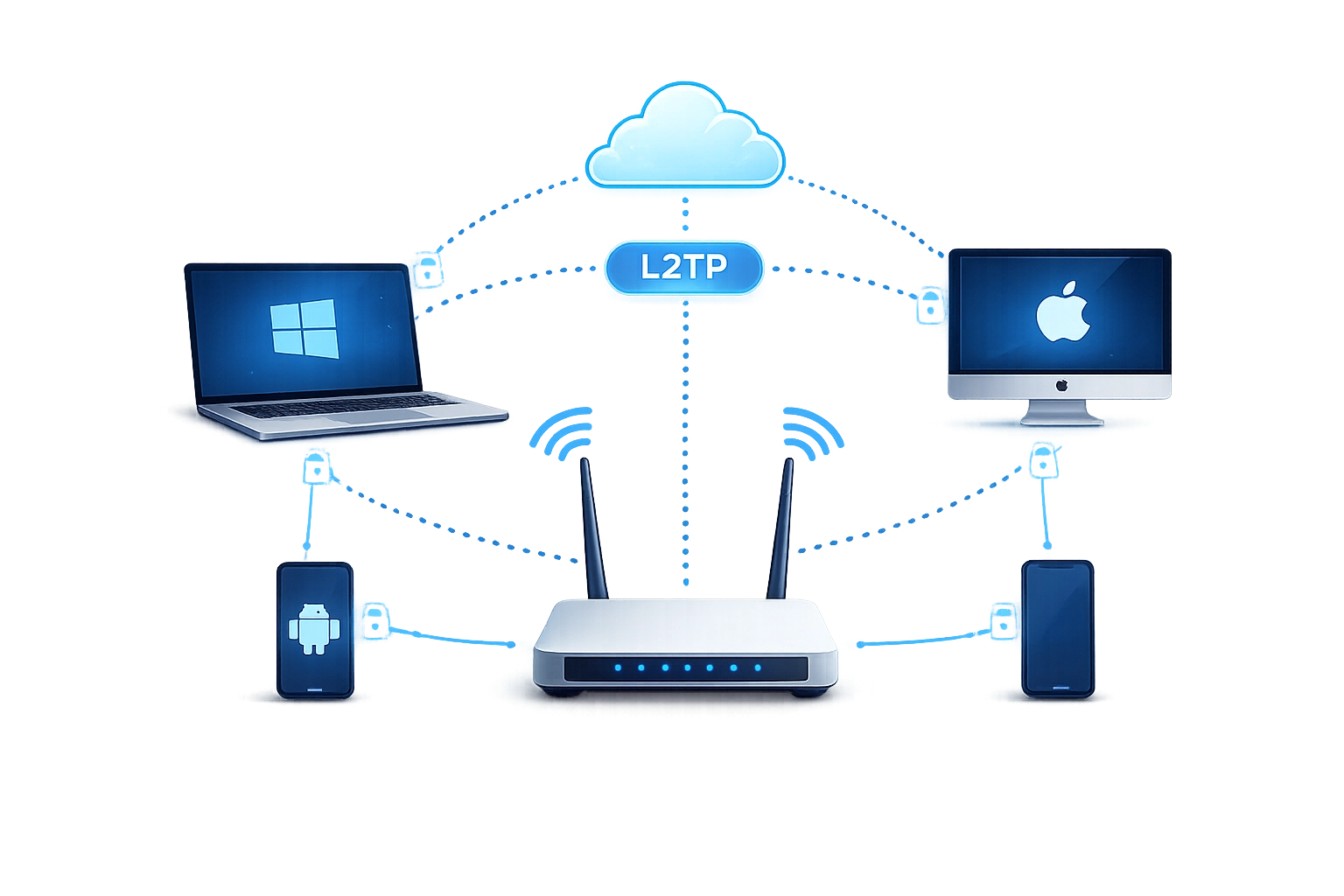 Unlike many VPN providers that require dedicated applications, L2TP works natively on Windows, macOS, iOS, Android, and most routers and modems.